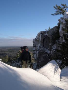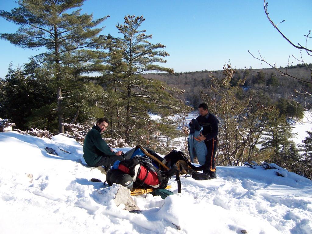 Lunch in the snow. This is just before the main ridge in the