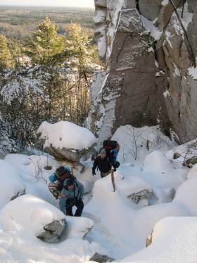 Walking our way up to the main ridge. In winter, this is a bit